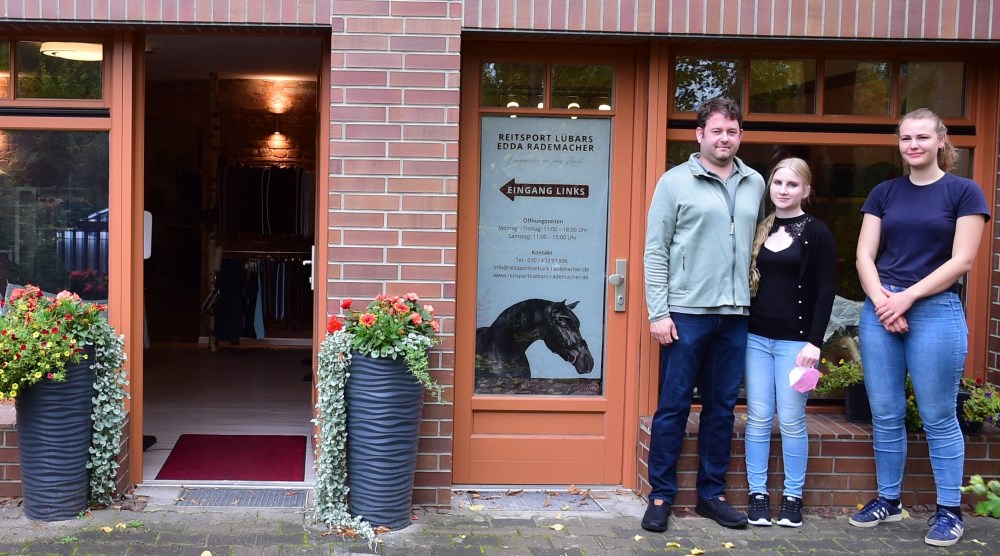 mit Hochdruck arbeiten wir an der Renovierung und Einrichtung unserer neuen Geschäftsräume. Dies wird noch einige Tage in Anspruch nehmen." Acht Jahre nach der Übernahme des Großteils des Geschäft "Reitsport Lübars" von Petra Paris, bekam Edda Rademacher die Gelegenheit, nur wenige Meter vom alten Standort entfernt, in ein größeres Ladengeschäft zu ziehen. Zum 1.5. sollte der Umzug auf die andere Straßenseite, in die ehemaligen Räume von Markisen World Fuchs, in die Hausnummer Alt-Lübars 29a stattfinden. Bereits Ende März hatten Handwerker und ein Team von Rademacher begonnen, die Räume nach den Wünschen der neuen Mieterin umzubauen und zu renovieren. Aber der Umbau eines Hauses Baujahr 1890 hat so seine Tücken. "Wir haben uns das alles etwas einfach vorgestellt, aber ohne handwerkliche Erfahrung schätzt man manche Arbeit falsch ein. Dass wir mehrere großeContainer mit Bauschutt füllen würden, hätten wir vorher nie gedacht. Aber ich hatte auch keinen festgelegten Plan für die Raumaufteilung, die Ideen kamen bei der Arbeit und mein Ziel dabei war immer die bestmögliche Produktpräsentation ", erzählt Edda Rademacher. Die gelernte Einzelhandelskauffrau war vor der Selbstständigkeit Mitarbeiterin im Geschäft von Petra Paris und ist selbst Besitzerin mehrerer Pferde. Bevor sie Ende April das Ladengeschäft, die Lagerfläche und Nebenräume in Alt-Lübars 3 besenrein an die Hausbesitzerin Petra Paris übergab, wurde nicht nur die aktuelle Verkaufsware, sondern auch viele Dinge, die sich seit 2013 angesammelt hatten, über die Straße gebracht. Natürlich war es zugleich ein günstiger Zeitpunkt zum Sortieren und Entsorgen, die Berliner Stadtreinigung hatte mehrfach Besuch aus Lübars. "Während der Renovierungsphase habe ich und meine Helfer sehr viel gelernt, wir können jetzt tapezieren, malern, Boden verlegen. Die jungen Mitarbeiter sind nun in der Lage, eine eigene Wohnung zu gestalten und einzurichten. Ja, die Fertigstellung der neuen Räume hat länger gedauert, aber wir sind als Team noch enger zusammengekommen. Und, wir alle haben uns wochenlang von Fast Food oder Essen vom Lieferservice ernährt, diese Phase ist zum Glück vorbei", lautet der Rückblick der Chefin auf diese außergewöhnliche Zeit. Anfang Juli wurde die offizielle Eröffnung mit vielen Angeboten gefeiert. Ein Teil der Verkaufsfläche, besonders bei Bekleidung, wird als Shop-in-Shop-System, also nach Marken sortiert, genutzt. Zur durchdachten Gestaltung gehört auch eine Ecke mit Spielzeug für Kinder. In vielen Räumen sind Dachfenster eingebaut, dadurch wirkt alles hell und freundlich. Noch ein optischer Pluspunkt sind die historischen Backsteinwände und die Rundbögen, dadurch wird der Charme des historischen Gebäudes erhalten.